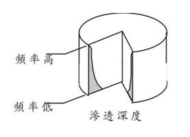 運用渦損來進行加熱(如左圖所示),線圈通以高頻電流Ia,則金屬體M必感應出Ib之電流,另M為鎖閉迴路造成Ib電流短路因而造成金屬體M溫度快速上升,由於渦電流是由Ia感應金屬體Ib引起,但並非金屬整個均有Ib之電流,它是由線圈Ia頻率而有所不同,頻率高則集中於表面,反之則愈深入金屬體內部,此即為集膚效應(如右圖所示)。