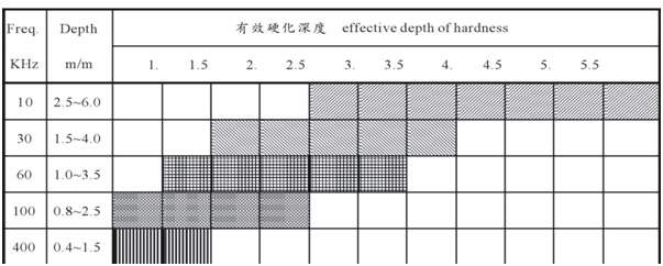 高週波熱處理裝置主要是利用感應電流在工件必要的表面部分加熱,並進行必要的淬火、回火等熱處理程序,以獲得表面硬度大而工件心部韌性佳的表面特性。裝置主要包括高頻產生器、加熱線圈及工件運動夾持機構。感應加熱的加熱效率甚高,能在極短的時間內加熱至高溫,並獲得極佳的硬化層。本套設備之淬火加熱深度及回火處理係通過感應線圈電流之頻率來決定,頻率愈低硬化深度愈深,此即為集膚效應(skin effect)。